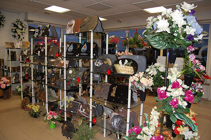 A côté du magasin, la SARL Balochard dispose d’un espace dédié à la marbrerie avec une zone d’exposition. L’entreprise accueille également les familles dans son funérarium où elles peuvent se recueillir dans un espace intime et paisible.